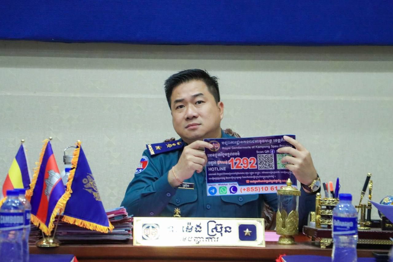 ខេត្តកំពង់ស្ពឺ៖ នាថ្ងៃទី១៣ ខែសីហា ឆ្នាំ២០២៥ លោកឧត្តមសេនីយ៍ត្រី ម៉េង ស្រ៊ុន មេបញ្ជាការ កងរាជអាវុធហត្ថខេត្តកំពង់ស្ពឺ បានអញ្ជើញដឹកនាំប្រជុំស្តីពីការដាក់ឲ្យប្រើប្រាស់នូវលេខទូរស័ព្ទអន្តរាគមន៏សង្គ្រោះបន្ទាន់1292(Hote Line)របស់បញ្ជាការដ្ឋានកងរាជអាវុធហត្ថខេត្តកំពង់ស្ពឺ