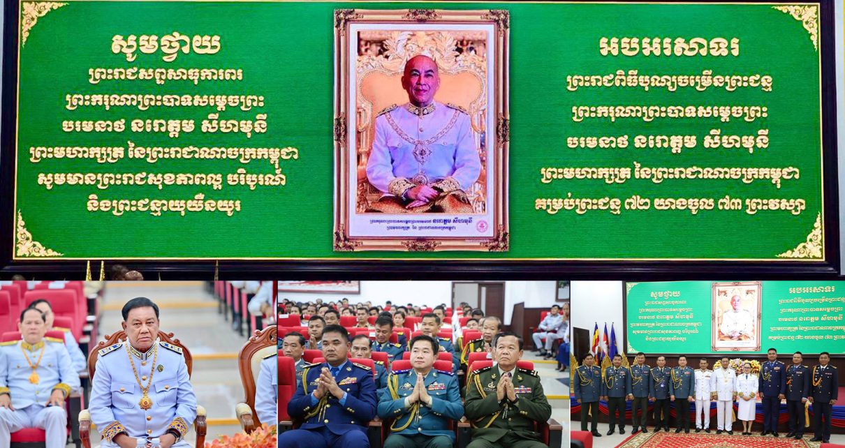 ព័ត៌មានជាតិ លោក ឧត្តមសេនីយ៍ត្រី ម៉េង ស្រ៊ុន មេបញ្ជាការកងរាជអាវុធហត្ថខេត្តកំពង់ស្ពឺ បានអញ្ជើញចូលរួមក្នុង ព្រះរាជពិធីបុណ្យចម្រើនព្រះជន្ម ព្រះមហាក្សត្រ នៅសាលាប្រជុំធំ នៃអគាររដ្ឋបាលខេត្តកំពង់ស្ពឺ ខេត្តកំពង់ស្ពឺ៖នាព្រឹកថ្ងៃអង្គារ ២រោច ខែពិសាខ ឆ្នាំម្សាញ់ សប្តស័ក ពុទ្ធសករាជ ២៥៦៩ ត្រូវនឹងថ្ងៃទី១៣ ខែឧសភា ឆ្នាំ២០២៥ លោក ឧត្តមសេនីយ៍ត្រី ម៉េង ស្រ៊ុន មេបញ្ជាការ កងរាជអាវុធហត្ថខេត្តកំពង់ស្ពឺ