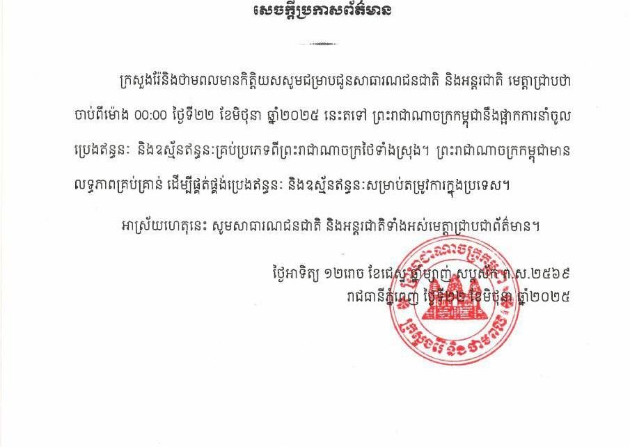 ព័ត៌មានជាតិ សេចក្តីប្រកាសព័ត៌មាន របស់ ក្រសួងរ៉ែ និងថាមពល សេចក្តីប្រកាសព័ត៌មាន របស់ ក្រសួងរ៉ែ និងថាមពល ដោយបញ្ជាក់ថា