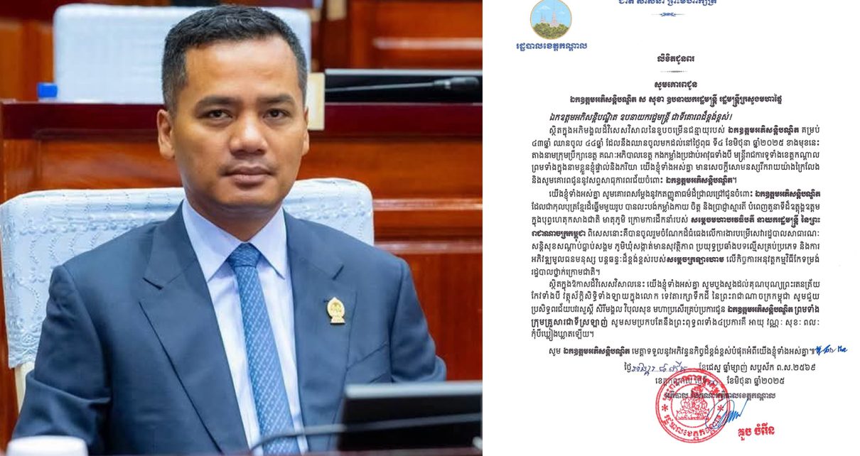 ព័ត៌មានជាតិ ឯកឧត្តម គួច ចំរើន អភិបាល នៃគណៈអភិបាលខេត្តកណ្តាល ចេញលិខិតជូនពរ សូមគោរពជូន ឯកឧត្តមអភិសន្តិបណ្ឌិត ស សុខា ឧបនាយករដ្ឋមន្ត្រី រដ្ឋមន្ត្រីក្រសួងមហាផ្ទៃ ខេត្តកណ្តាល៖ នាថ្ងៃទី០៣ ខែមិថុនា ឆ្នាំ២០២៥នេះ ឯកឧត្តម គួច ចំរើន អភិបាល នៃគណៈអភិបាលខេត្តកណ្តាល ចេញលិខិតជូនពរ សូមគោរពជូន ឯកឧត្តមអគ្គិសន្តិបណ្ឌិត ស សុខា