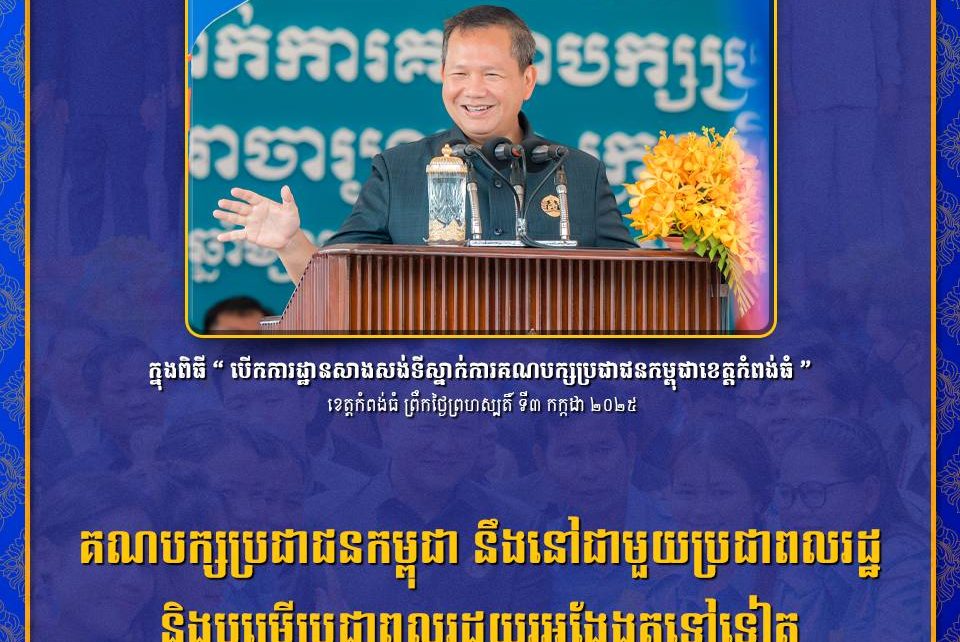 ព័ត៌មានជាតិ គណបក្សប្រជាជនកម្ពុជា នឹងនៅជាមួយប្រជាពលរដ្ឋ និងបម្រើប្រជាពលរដ្ឋយូរអង្វែងតទៅទៀត សម្តេចមហាបវរធិបតី ហ៊ុន ម៉ាណែត នាយករដ្ឋមន្ត្រីនៃព្រះរាជាណាចក្រកម្ពុជា និងជាអនុប្រធានគណបក្សប្រជាជនកម្ពុជា បានថ្លែងក្នុងពិធី